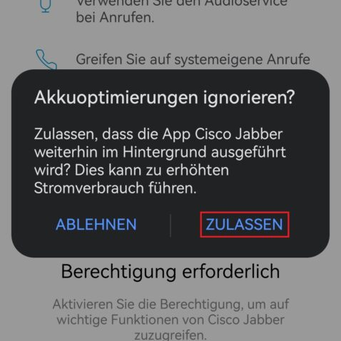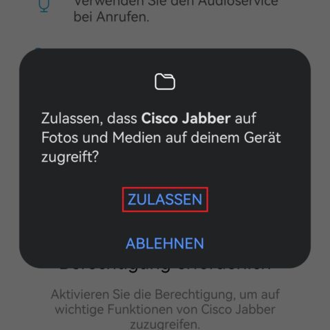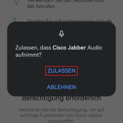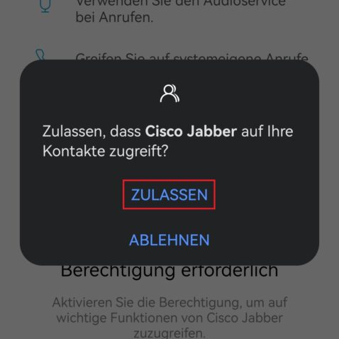 Möglicherweise benötigt Cisco Jabber Zugriffserlaubnisse, welche zugelassen werden müssen.